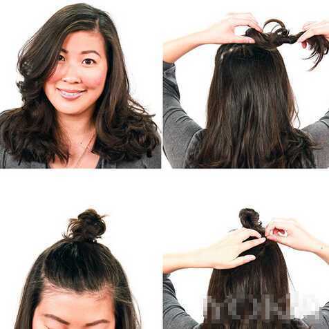 半扎丸子头操作起来非常简单,而且也很好看,如果你敢于并乐于露额头,那不妨试试。