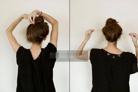 【丸子头教程step05】把发尾全部藏于丸子头之后,即使不用再拉扯秀发发型也能够饱满立体。