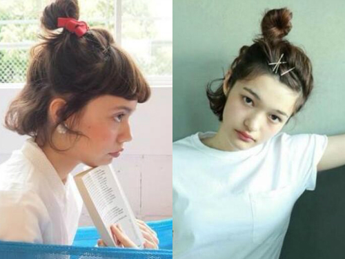 时尚的日式半扎丸子头超可爱,它们都由俏皮的短卷发扎成,随意倍显自然、蓬松。特别是右边这款侧边半扎丸子头设计非常精致与特别,最后使用可爱的发夹稍微装饰一下头发就更能凸显出甜美的感觉了。