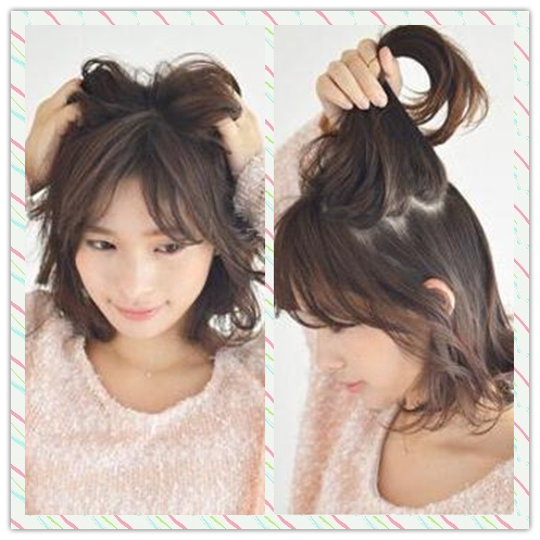 首先,MM们可用手将发顶捉抓得蓬松一些,然后将发顶与四周的头发区分出来,留出刘海。