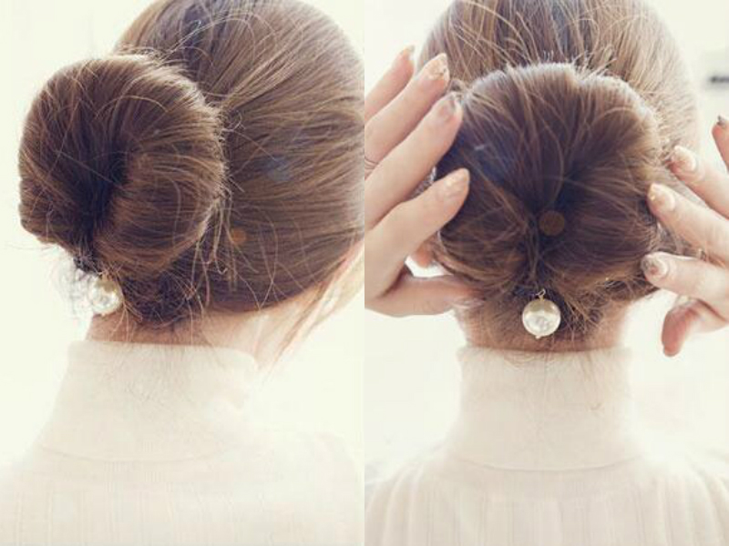 在学习教程之前我们先欣赏一下用盘发器扎出来的丸子头是怎样的吧!可以看出,这个丸子头造型非常的整齐规整,形状非常的形象好看,一颗珍珠发饰使整个造型更显精致大方,即便只看背面,也会觉得这是一个优雅甜美的女生。好了,知道你们迫不及待了,小编就不啰嗦了,立刻学起来吧!