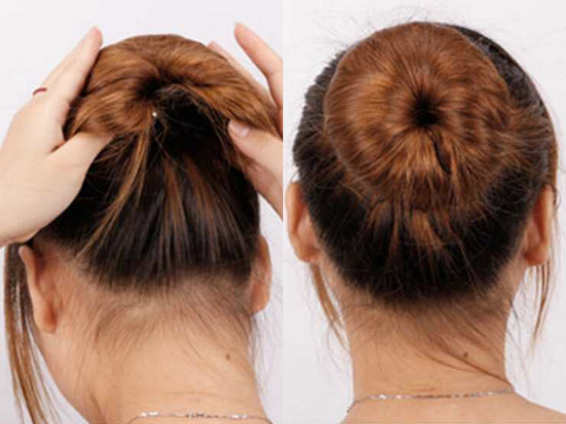 接着稍微调整一下头发,在头发需要交接的地方用发夹固定好,打理好细碎的毛发,一个漂亮的丸子头就完成啦!盘发器打造的丸子头圆润饱满,是不是很简单呢?