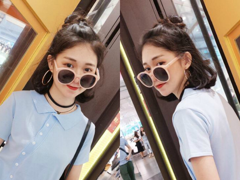 最近很火的free style也可以在发型上展现出来哦,把刚好贴着肩头的发尾打理出外翘效果,显得活泼灵动,即使刘海全被梳向后面扎成丸子,也依然有些毛茸茸的碎发留在额前,遮挡发际线之余更散漫随性,侧面突出女生那种自由不拘小节的性格。Half-Bun式半扎发本来就是懒人福利,所以在头顶上的这个小揪揪随你怎么扎都行,想扎的小一点或者大一点、高一点还是低一点统统都随便你,只要你觉得好看。