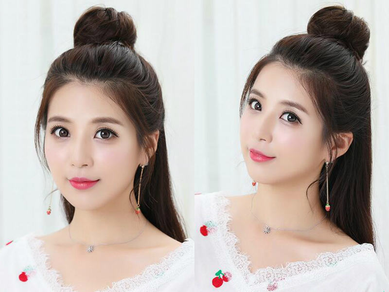 这么减龄百搭的半丸子头,圆脸妹子们赶紧扎起来,让自己变得更加可爱迷人。