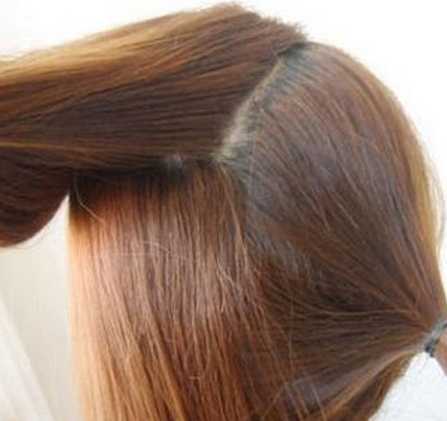 将原来分好还没扎的头发分成三份,将一份头发扭转后再和第一步扎好的马尾扎在一起。
