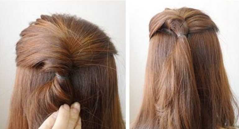 将扎好的一小束头发向右边扭转一次,然后用夹子固定好。