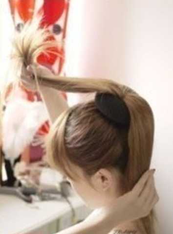 拿起头发后,再把头发分成两部分,分的时候不要弄乱哦,一半在上面,一半在下面,最重要的步骤要开始咯,留心哦。