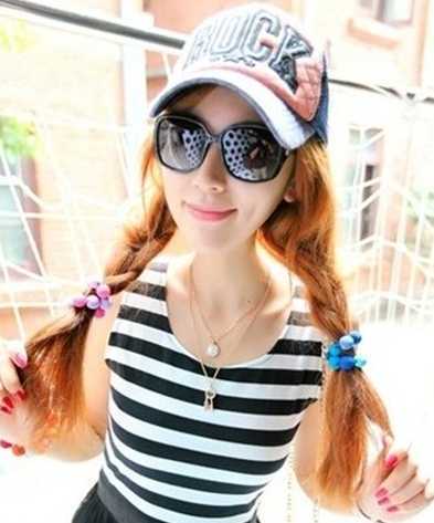 两边不同颜色的橡皮筋,青春个性,搭上帽子和墨镜,
