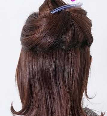 将头发理好后,再用大发夹将头部上半部分头发拿起并且夹好,如图所示哦。