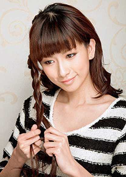 编成麻花辫(图中MM是从右侧开始编的),编的时候要注意麻花辫的整体大小,力度要适中。