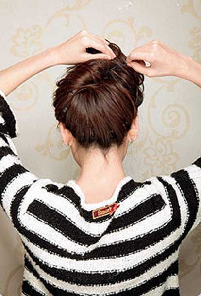 不断旋转,最后再用发夹将头发固定好,具体步骤如图所示,