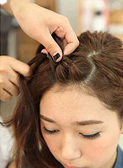 编好了一侧,再开始编另外一侧,手法也是一样,将刘海分成三小束再开始编,编的时候不要弄得太乱了,而且大小最好要参照一下编好的另一侧,只有这样出来的效果才会更好哦!