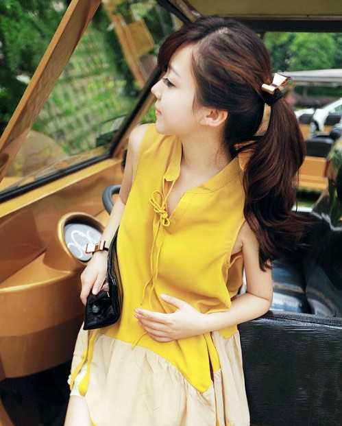 这样的扎发优雅甜美,虽然简单但一点都不影响气质,斜分刘海,后面稍带蓬松感扎起的马尾,看起来很让人心动。