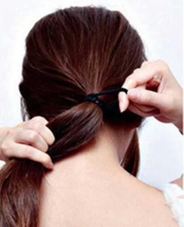 步骤二:低扎起一个马尾,再从马尾上取出一部分留备用!