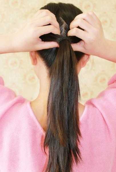步骤二:看看,都往这里看清楚些,在头发中间挖一个洞,记得要小心一些哦!