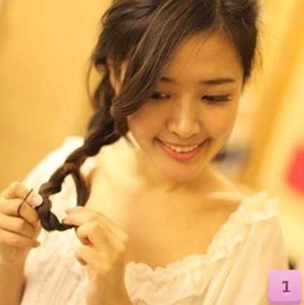 步骤十三:编至离发尾大概5厘米的位置就可以了,和图中MM一样,往回折一下。