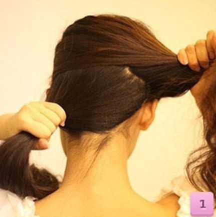 步骤一:先将头发梳好,然后再将头发分成上下两部分,左右手分别拿住上下两部分头发,具体步骤如图所示。