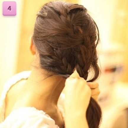 步骤八:将编好的两束麻花辫汇总在一起编麻花辫,弄的时候注意不要弄得太紧绷,那样出来的效果会没有那么好哦。