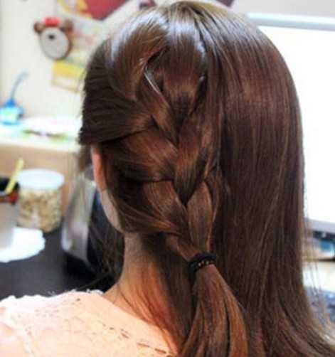 步骤二:然后就分成三份,编成发辫形状,再扎起起来!