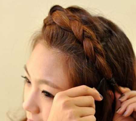 步骤三:把麻花辫用夹子固定在耳后微上朝后的位置。
