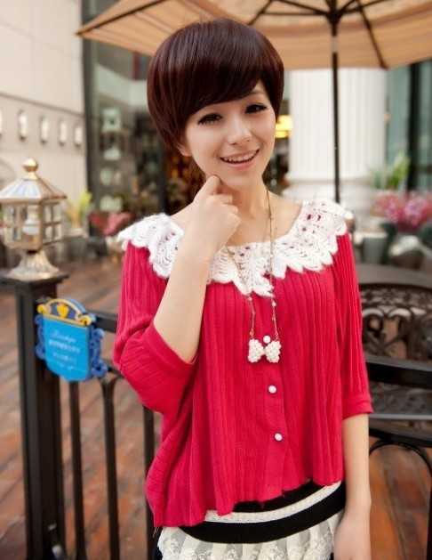 这款波波头短发发型,搭配微微侧分的斜刘海,很显小脸效果哦!