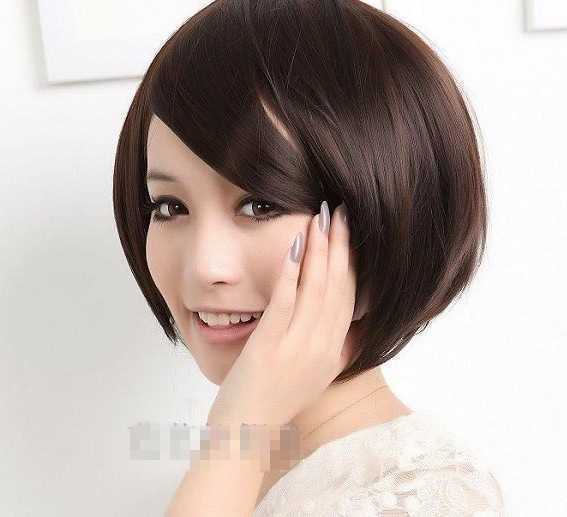 柔亮直顺的bobo头短发发型,是当下最流行的短发造型哦!搭配一款斜刘海发型设计,很显脸蛋小巧哦!