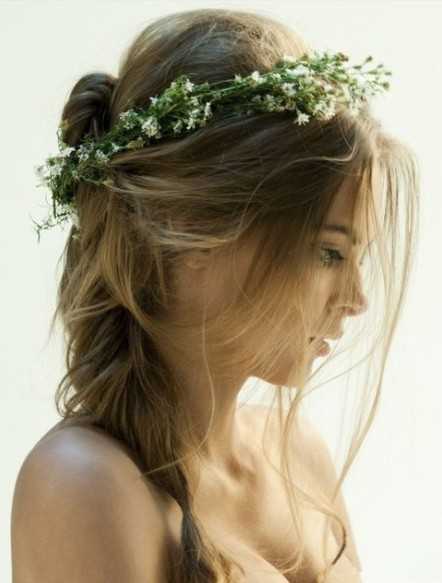 凌乱的一款新娘发型,别有一番风味,简单的扎发搭配小花装饰,一点都不失大方,而且还可以去除头纱的繁杂,搭配简单精致的妆容,使新娘子更加美丽动人。