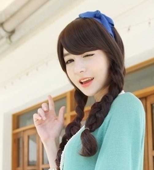 长长的头发,扎起了甜美俏皮气质的双马尾,小清新的感觉瞬间爆发,还起到减龄效果,三七侧分的刘海再配上一个蓝色的蝴蝶结头巾,非常时尚卖萌效果也相当给力哦!