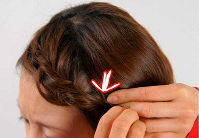 2、把编织好麻花辫的发尾,使用小发夹固定在头发内侧!