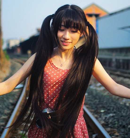 同样是双马尾的扎发,却是展现出不同的气质感,乌黑的长直的扎发中,呈现给我们更多的是满满的甜美可爱气息,萌萌的齐刘海,减龄装嫩不是问题哦!