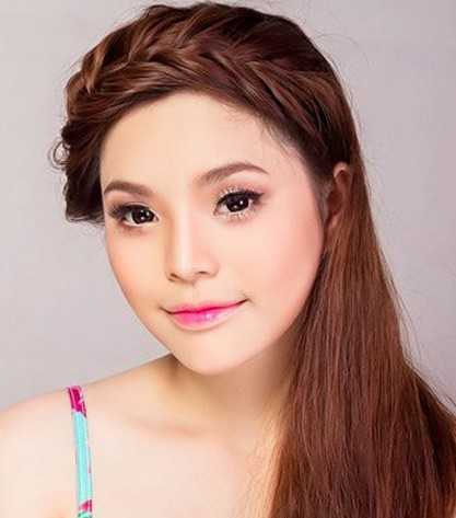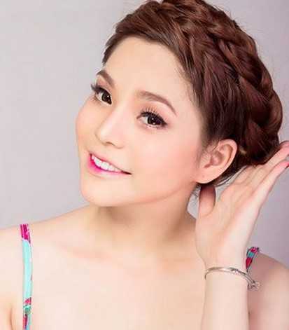 步骤五:最后将头发一次性编完,然后就盘在头顶上,这样清爽精致的编发扎发就完成了。