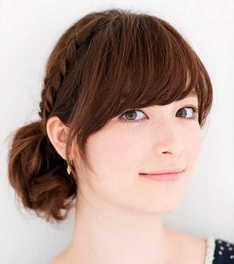 想来个简单而甜美的发型,就加点缀上编发设计吧,像这款低扎的花苞头,微微斜弧度的刘海,优雅恬静气质立即提升。