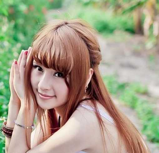 典雅少女居家的感觉,丝滑的梳发和大方秀气的半扎发结合着,打造出的靓丽气质美,露额的设计,又是尽显女生恬静优雅的魅力感。