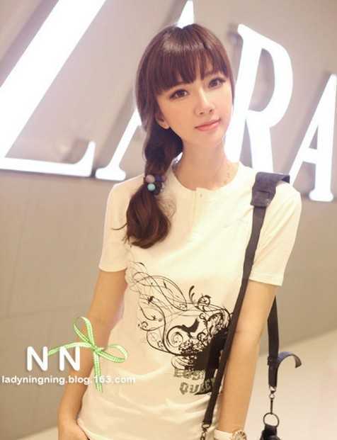 淑女们必备的一款韩式扎发发型,选择松散侧编的发辫扎发设计,搭配上刚盖眉毛的齐刘海,无疑是娇美、清新的一一尽显。