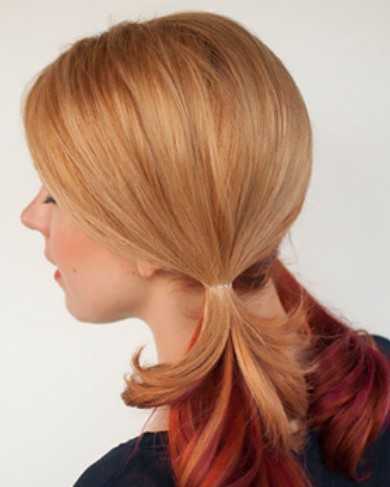 步骤二:分出来的头发上的用发夹固定,下部分就绑成马尾。