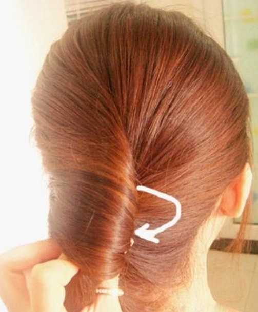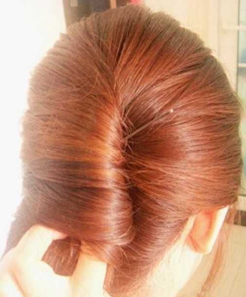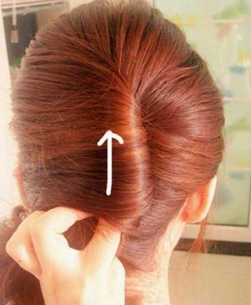3、然后把扭转好的头发绕着拇指盘卷收拢,弄至一个蓬松而高耸的形状。