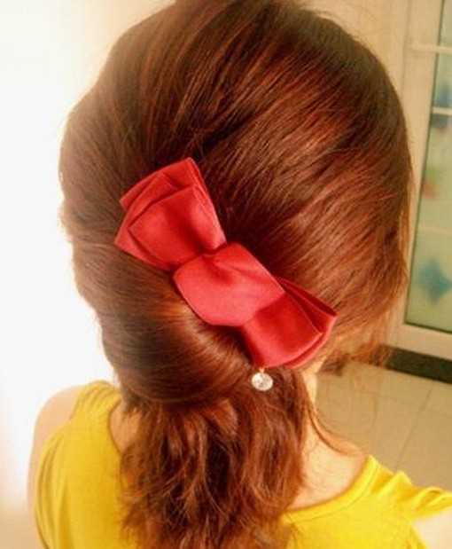 6、最后在侧面别上红色的蝴蝶结发饰就好了。