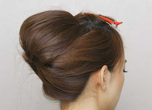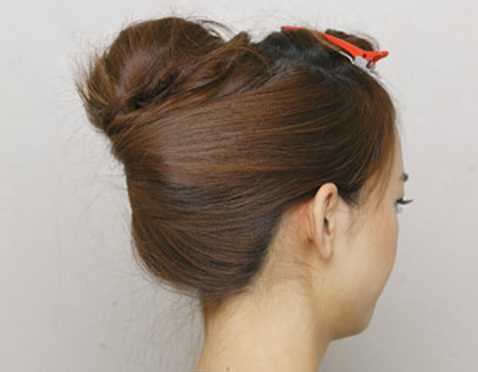 步骤五:将两边的头发分别包裹住脑后的发簪内扭转起来。