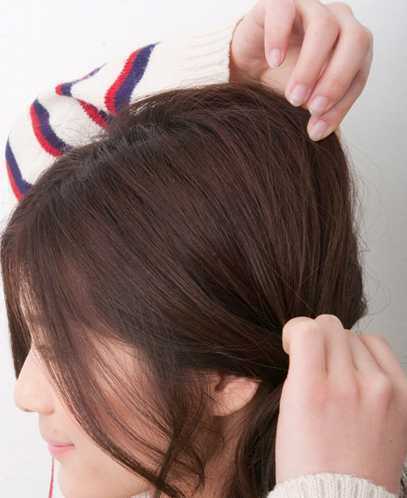 step8:最后就用手拉扯下头顶的头发,制造出蓬松感。