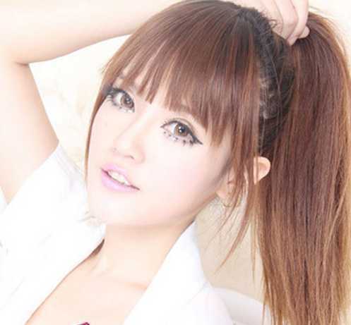 1、首先简单在头发的顶部处高扎马尾发辫。