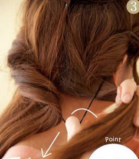 1、首先将头顶的头发往后扭转,并使用发夹固定好。
