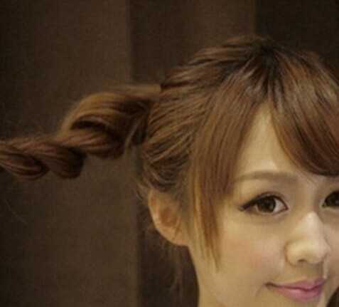 3、如图上,两股发束互相缠绕旋转,拧成一股发束。
