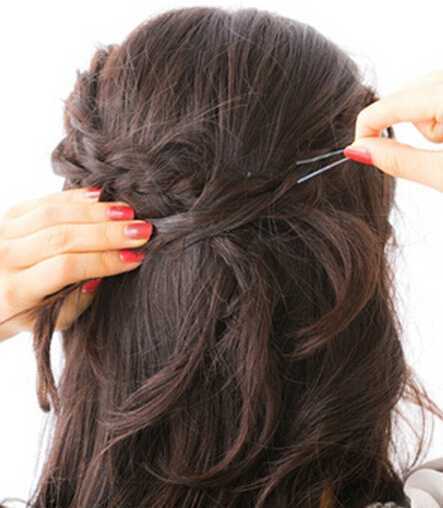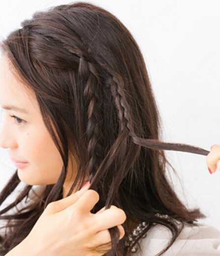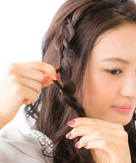 3、而另一侧头发也编出发辫并把辫子拉扯蓬松。