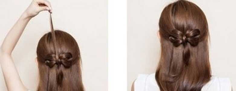 4、把发尾固定在蝴蝶结的中间处,这样的公主头半扎发也搞定啦。