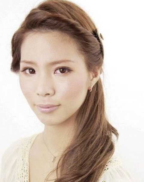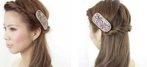 5、最后把剩余的头发往侧摆放,再别上精致发饰就OK了。