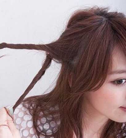 步骤三:然后把这一撮的头发扭转成辫子的造型。