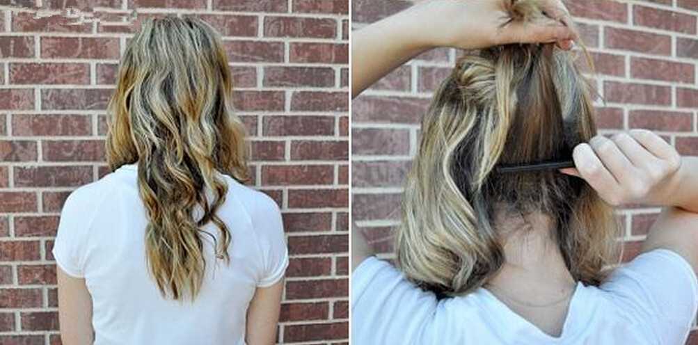 步骤一:先将中长卷发捋顺,然后将头顶上的头发用梳子倒梳,打出蓬松凌乱感。
