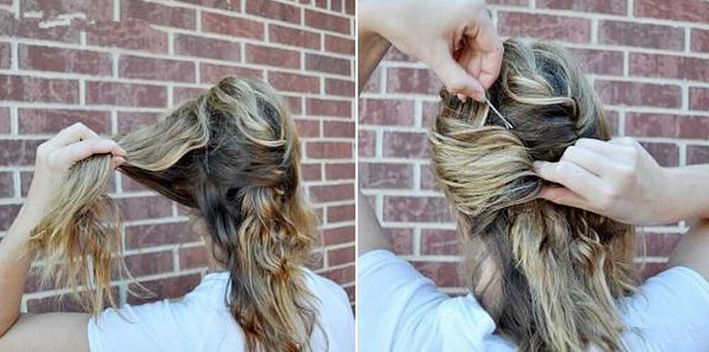 步骤四:左侧的部分的头发向后扭转,然后再用小黑夹固定住。