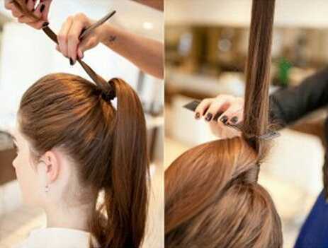 步骤7、将倒刮后的马尾自然放下,注意不要和还没有倒刮的头发放在一起哦;