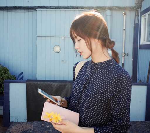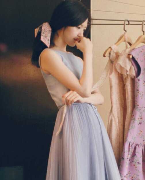 3、甜美的低扎发充满了韩国女人的淑女优雅味道,细碎的刘海,两侧留了几条发丝,修颜显甜美,后面的低扎发也很有小心机哦,扎好后往里翻出来,别有一番风味呢!